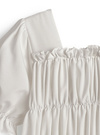 デコルテを見せるスクエアネックで、顔周りはすっきりとした印象に。