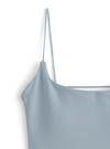 伸縮性があり肌当たりのなめらかなカットソー生地のキャミソール。後ろは大胆なオープンデザインにすることで、ヘルシーな印象に仕上げた。