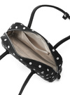 マットな質感のフェイクレザーにクラシカルな水玉模様をプリントしたバッグ。横長のボストン型はスタイリッシュでスマートな印象を与えてくれる。