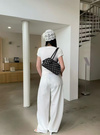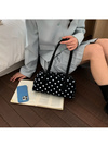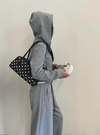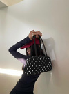 マットな質感のフェイクレザーにクラシカルな水玉模様をプリントしたバッグ。横長のボストン型はスタイリッシュでスマートな印象を与えてくれる。