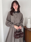 ベルト付きレザー襟チェック柄ワンピースの商品詳細情報のページです。