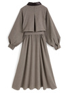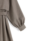 落ち着きのある配色のチェック柄を使用した、トラッドな雰囲気漂うワンピース。ケープのような身頃にウエストベルトをプラスし、トレンチ風に仕上げたこだわりの一着。