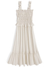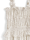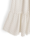 なめらかな風合い生地に細かいドット柄をプリントしたキャミワンピース。肩や胸元、ウエストのフリルデティールが華やかでフェミニンな雰囲気。