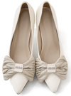 艶感のあるアッパーに光沢のあるビッグリボンを施し、上品な表情に。ロゴパーツが高見えを叶え、さりげなく華やかさを加える。