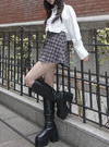 厚底ヒールレザーロングブーツの商品詳細情報のページです。