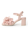 ランダムに配置された光沢のある立体リボンがキュートな印象のサンダル。コーディネートにプラスするだけで足元を華やかに演出してくれる。