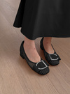 低めのヒールなので歩きやすく、楽ちんな履き心地も魅力的。