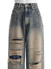 フェイクダメージストレートデニムパンツの商品詳細情報のページです。