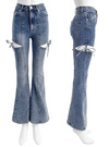 サイドカットアウトリボンフレアデニムパンツの商品詳細情報のページです。