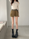両サイドにあしらったフラップ風ポケットがポイントになったショートパンツ。さらっとしたはき心地で、季節を問わず着回せるのが魅力。