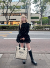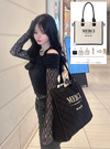 キルティングとフェイクレザーのコンビで、クラシカルに仕立てたトートバッグ。フレンチシックなロゴがカジュアルさを抑えてくれる。