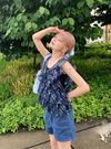 シアー素材のフリルがエアリーでガーリーな印象を与えるベスト。フロントのリボンやフリルにメロウ仕様など、細部まで甘く仕上げた一着。