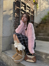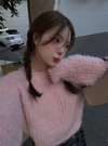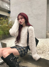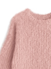 表面を毛羽立たせ、ふわふわとした柔らかい手触りに仕上げたニットトップス。