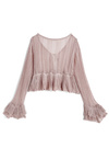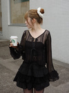 ボリュームたっぷりの袖口フリルも華やかな手元を演出するポイント。