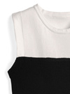 編地を切り替えたバイカラーデザインが印象的なチュニックアイテム。すっきり着られるノースリーブタイプで、程よい肌見せ具合が大人っぽい。
