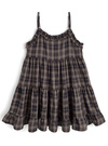 チェック柄生地を採用し、涼やかな着心地を叶えるキャミソールワンピース。段ごとに切り替えられたティアードが広がりを生み、ふんわりとしたフォルムを描く。