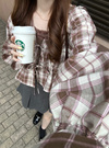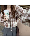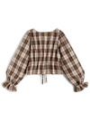 チェック柄リボンフリルスリーブブラウスの商品詳細情報のページです。