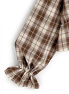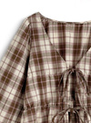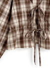 さらりとしたチェック柄生地を使用し、軽快なムードを漂わせる。深めのVネックとフロントのリボン結びで、女性らしいニュアンスをオン。