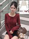 編み上げリボンレースフリルニットトップスの商品詳細情報のページです。