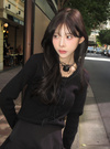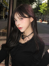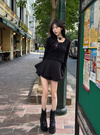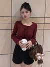 ネック周りやフロントにあしらったレースフリルが、ガーリーな印象を与えるトップス。レースアップのディテールがさらに甘さを添えるアクセント。