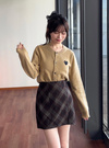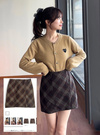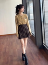 落ち着きのあるチェック柄で仕立てたミニスカートの登場。さり気ないタックが入ったタイトシルエットが女性らしさを演出。