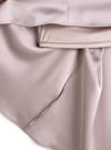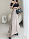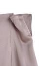 滑らかな光沢を持つサテン生地で、上品な艶めきを放つスカート。ウエスト位置を高く設定し、腰回りがすっきりと見える。