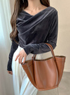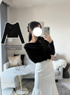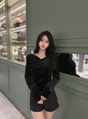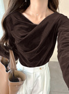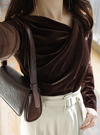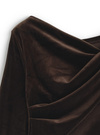 艶やかなベロア生地で仕立てたトップスは、上品な光沢感で存在感を放つ。デコルテを美しく見せるドレープネックが、レディな印象をもたらす。