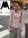 レースホルターネックレイヤード風リブトップス[dk1559]