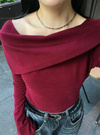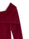 アシンメトリーの折り返しデザインが特徴的なトップス。