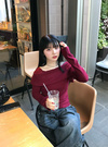 広めに開いたネックラインが顔まわりをすっきり見せてくれる