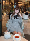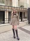 存在感のあるビッグカラーとベロアリボンで、クラシカルな甘さ漂うワンピース。バックスタイルがセーラーカラー風になっているのもポイント。