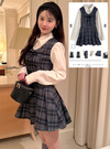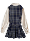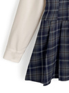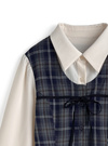 チェック柄のワンピースとシャツを組み合わせた、ドッキング仕様のアイテム。胸元の華奢なリボンやひらっと広がるプリーツデザインでガーリー要素をオン。