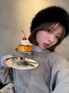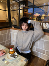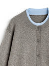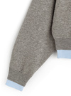 カーディガンを重ね着しているような遊び心溢れるデザインがポイント。ベーシックなクルーネックにすることで、主張し過ぎないルックスに仕上げた。