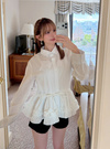 フリルを重ねたボリュームのあるティアードデザインのチュニックアイテム。さらりとしたシャツ生地なので、着心地が良くロングシーズン活躍できる。