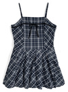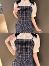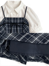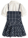 パフスリーブブラウス×チェック柄リボンプリーツキャミソールワンピースセットアップ[dk1624]