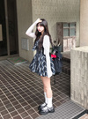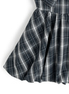 大きめリボンやバルーンシルエットでガーリー要素を詰め込んだデザイン。シックなチェック柄生地を使用することで、甘すぎない大人フェミニンな雰囲気に仕上げた。