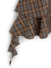 柔らかくなめらかな生地感で着心地の良いチェック柄ミニワンピース。フロントのフリルや裾のイレギュラーヘムが立体的なシルエットをつくり出す。