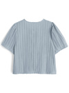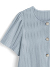 ベーシックなラウンドネックにぷっくりとしたパールボタンが上品な雰囲気。