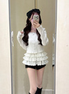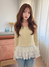 カーデから覗くキャミソールのボリュームフリルがお気に入りのポイント。