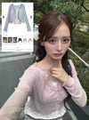 シアーリブレースカーディガン×フリルキャミソールアンサンブルの商品詳細情報のページです。