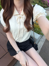 リボンパフスリーブ透かし編みトップスの商品詳細情報のページです。