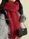 起毛加工を施した厚みのある素材でボリューム感たっぷりに仕上げたマフラー。くるくるとした立体的なフリンジデザインでカジュアルさをプラス。
