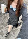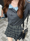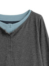 重ね着風のデザインとカラーリングが魅力のトレンド感漂うトップス。すっきりとした印象のヘンリーネックがアクセントに。