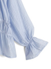 シワ加工を施したほんのりシアー感のある軽やかなブラウス。ギャザーディテールやキャンディースリーブが、女性らしさを引き立てるポイント。