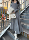 サムホール付きラウンドネックニットフレアワンピースの商品詳細情報のページです。