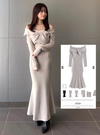 ツイストオフショルダーマーメイドロングワンピースの商品詳細情報のページです。