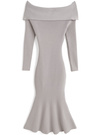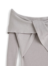 胸元の立体的なツイストデザインがアクセントになったオフショルワンピース。ボディに沿ったきれいなマーメイドラインが女性らしさを引き立てる。