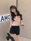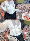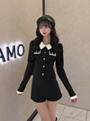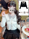 シャギーカラー配色ゴールドボタンカーディガン[dr837]