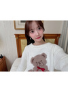 愛らしい表情のテディベアにキュンとする、ガーリームード漂うトップス。ハートモチーフや首元の立体的なリボンがさらに甘さをプラス。
