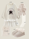 パールがアクセントとなり、フェミニンさを引き立てるフェイクファーのティペット。特徴的な大きなリボンデザインが、ガーリーな甘さを加速させる。
